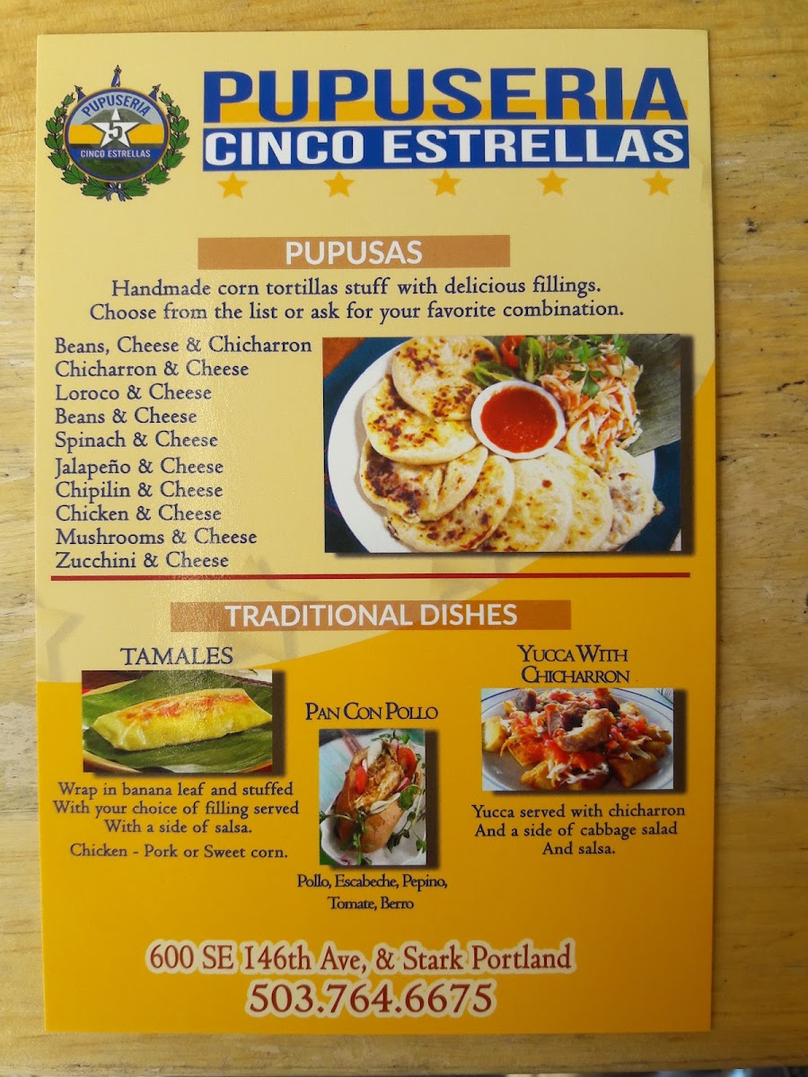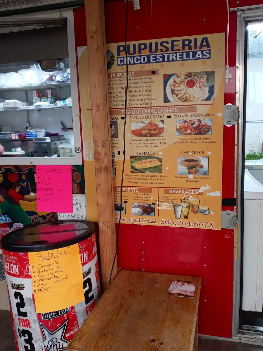 Welcome to Pupuseria Cinco Estrellas, a culinary gem nestled in Portland, OR. The star of their menu is undoubtedly the pupusas, which come in a delightful variety including Beans, Cheese and Chicharron and Loroco and Cheese, all handcrafted with care. Priced at just $4.00 each, these pupusas reflect authentic flavors and generous fillings.