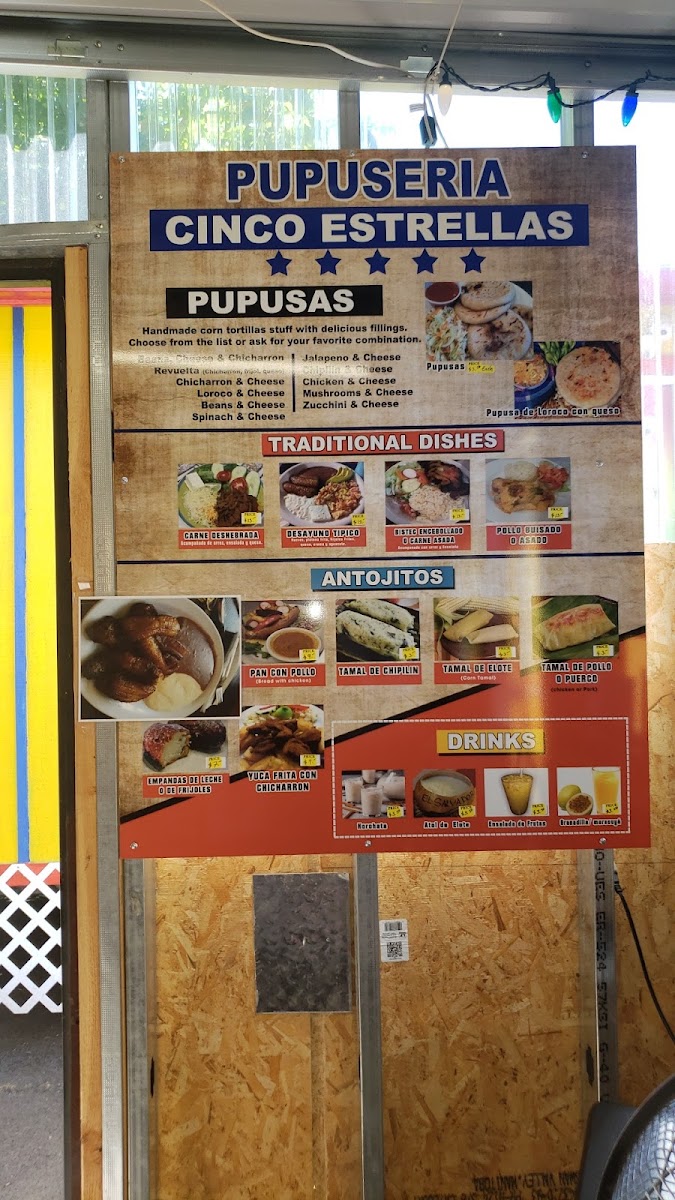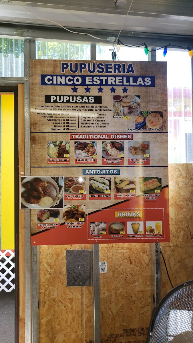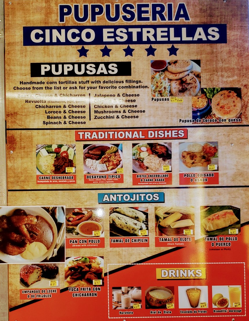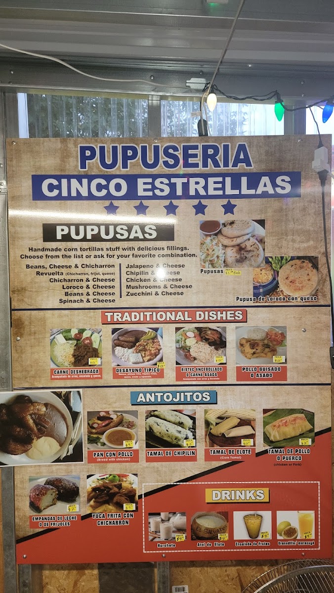For beverages, indulge in sweet Horchata or Granadilla at just $3.00. Reviews from delighted customers emphasize the quality and comforting atmosphere, making Pupuseria Cinco Estrellas a must-visit for traditional Salvadoran cuisine.